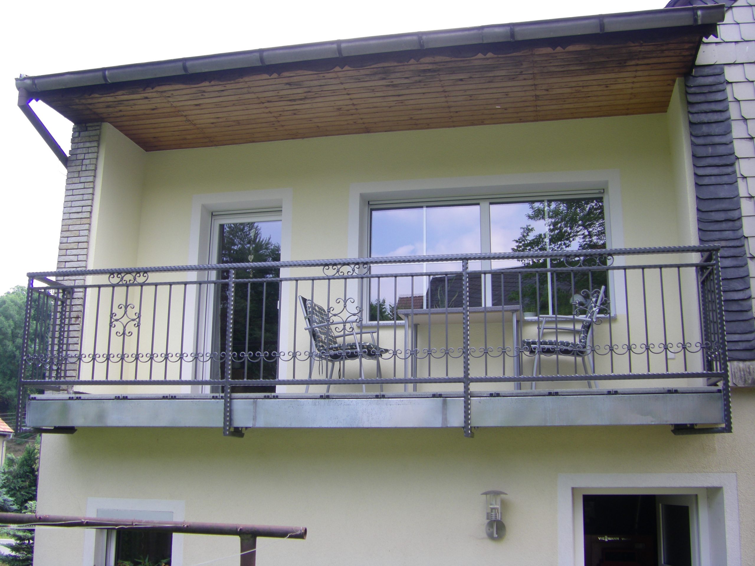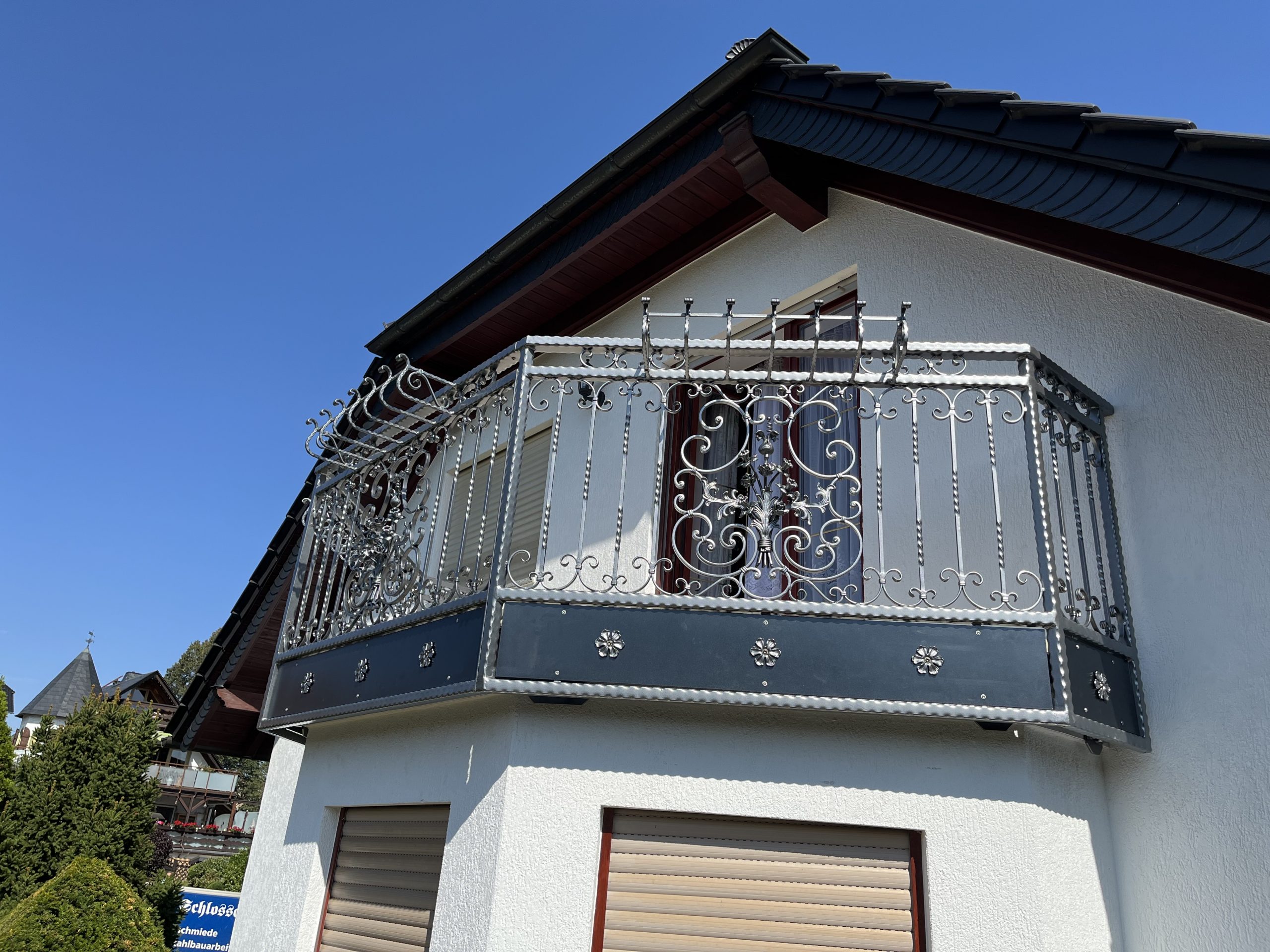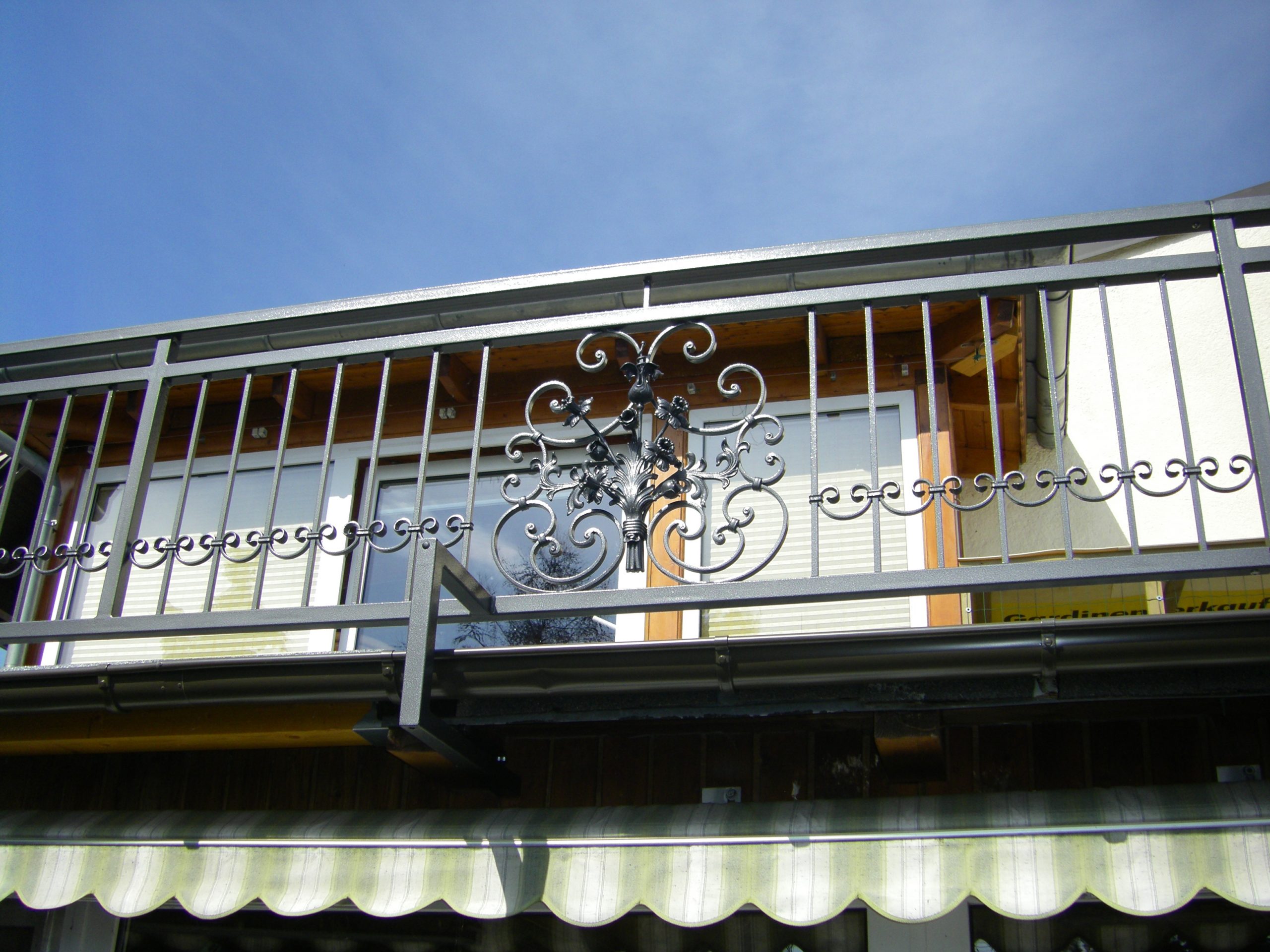 Unsere Balkongeländer aus Schmiedeeisen ganz klassisch, auch als Bauchgitter eventuell mit entsprechenden Halterungen für Ihre Balkonkästen oder modern aus Edelstahl gefüllt mit Glas oder Trespa-Platten. Alles ist möglich.