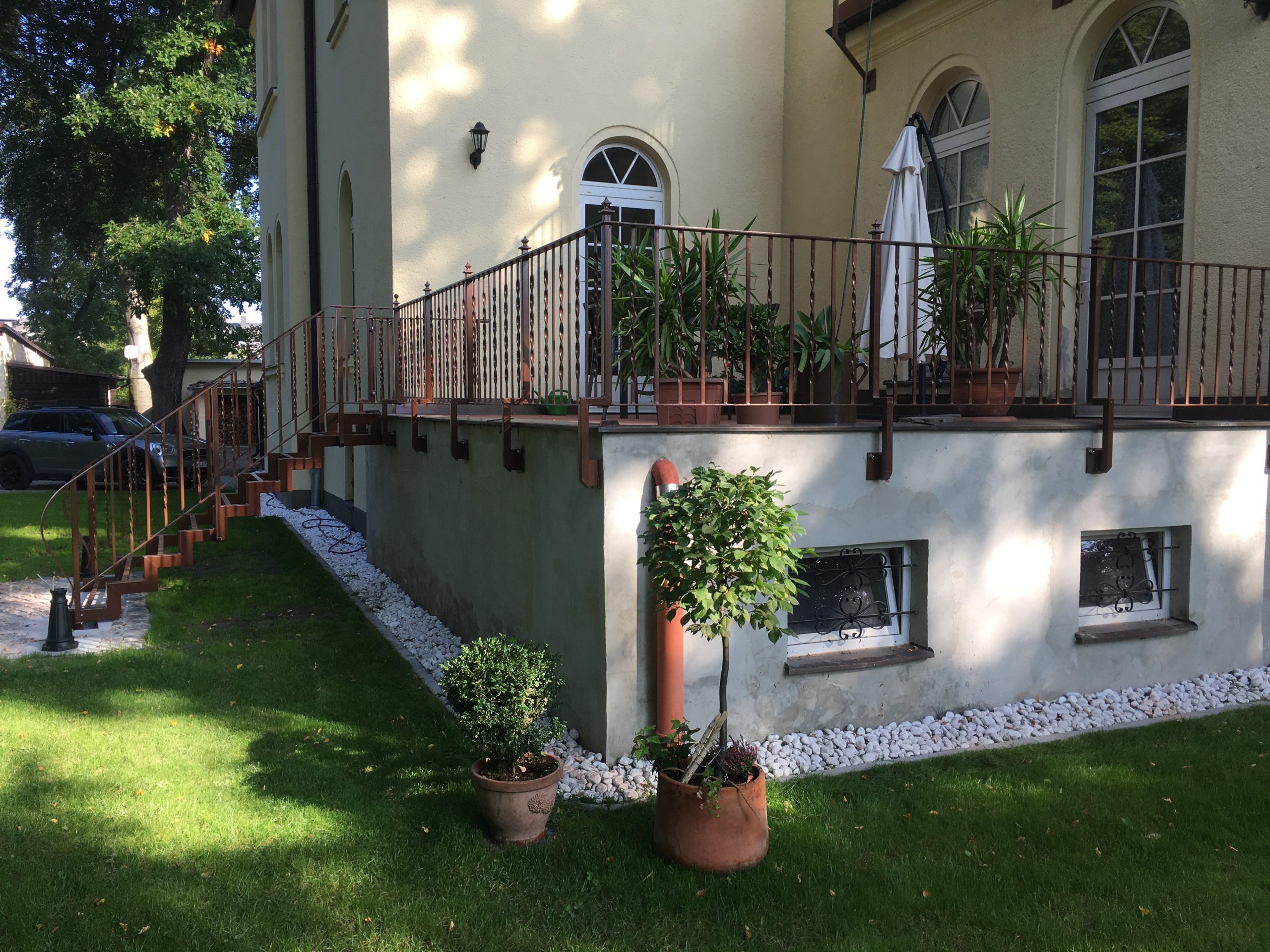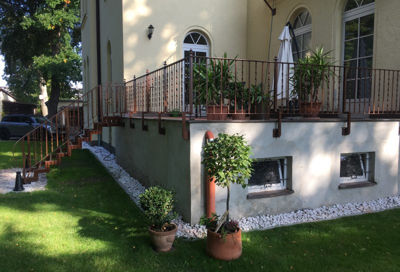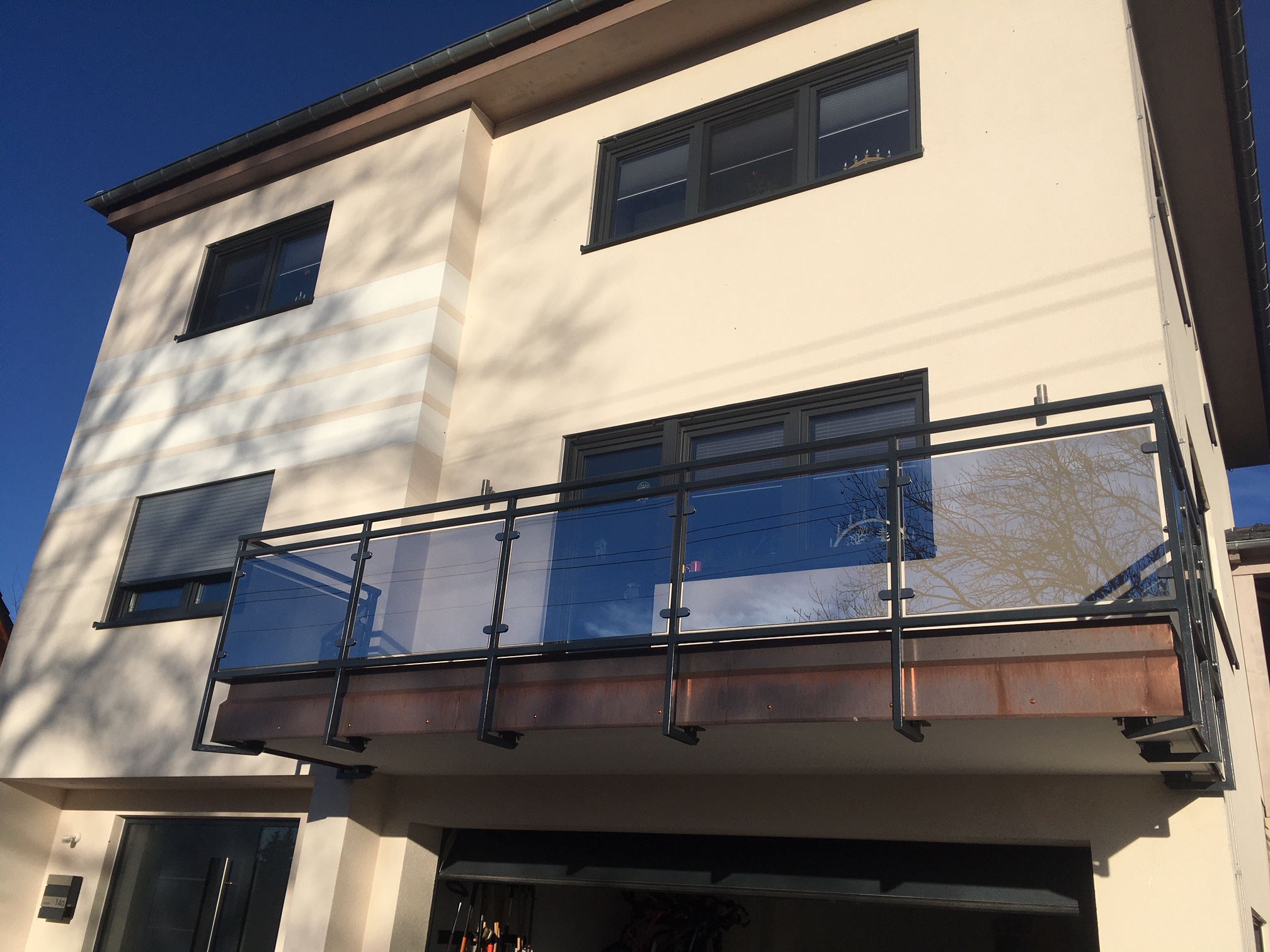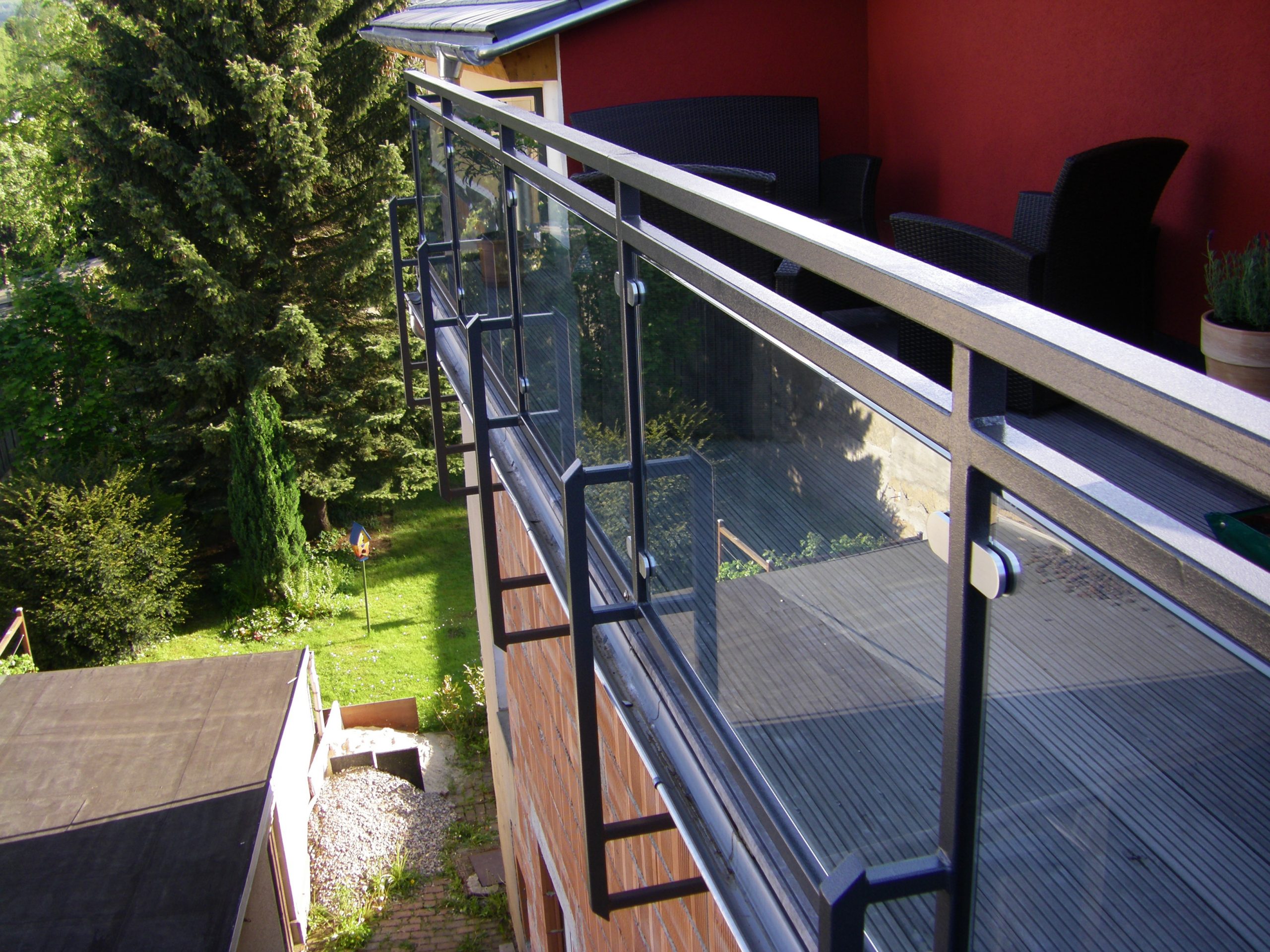 Unsere Balkongeländer aus Schmiedeeisen ganz klassisch, auch als Bauchgitter eventuell mit entsprechenden Halterungen für Ihre Balkonkästen oder modern aus Edelstahl gefüllt mit Glas oder Trespa-Platten. Alles ist möglich.